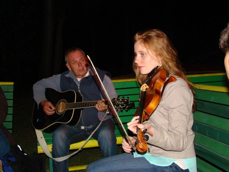 En soirée, autour d’un feu chaleureux, une session de jam a eu lieu. Notre porte-parole, Réjean Desjardins nous a rejoint au Patro. Les participants du matin ont pu présenter leur chanson, et tout le monde a chanté au son des guitares et du violon.