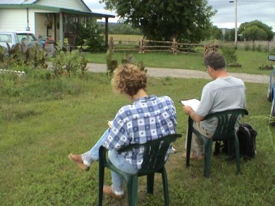 Clément fait une peinture à l’aquarelle, moi j’essaie tant bien que mal à faire un croquis aux crayons, que je n’ai même pas terminé !!!!!