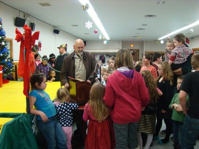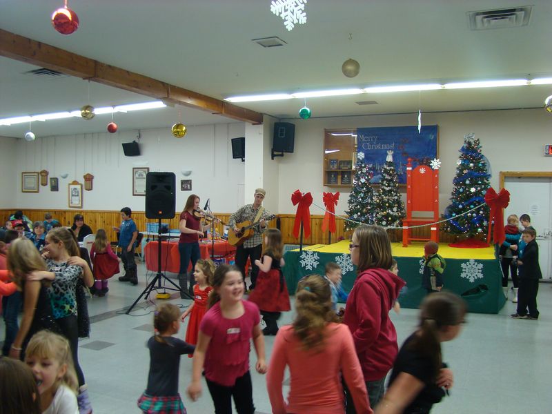 Ursula Schultz et Steve Schellenberg sont venus pour le plus grand plaisir des enfants présents au souper-spaghetti organisé par le Patro. En attendant la venue du Père Noël, les enfants ont pu s’amuser et danser sous le rythme du violon et de la guitare de nos amis artistes.