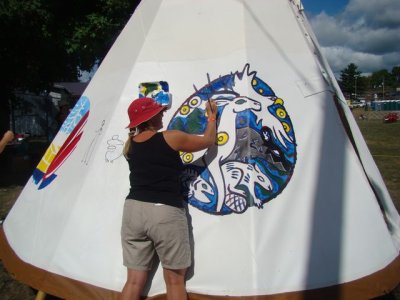 Une équipe d’artistes du Pontiac ont décoré un tipi pendant la Foire de Shawville le vendredi 31 août et le samedi 1er septembre 2012 entre 9h30 et 17h30. Les artistes ont illustré l’histoire du Pontiac, ses paysages et sa culture. Merci aux artistes Tina Michaud, Kate Aley, Jennifer Dale-Judd, Katharine Fletcher et Dawn Abercrombie. Il reste des espaces à peindre par Dale Shutt et Sébastien Beaudoin.