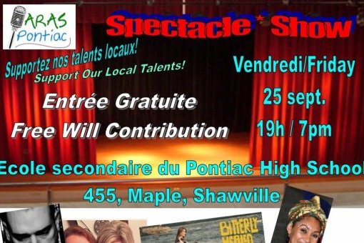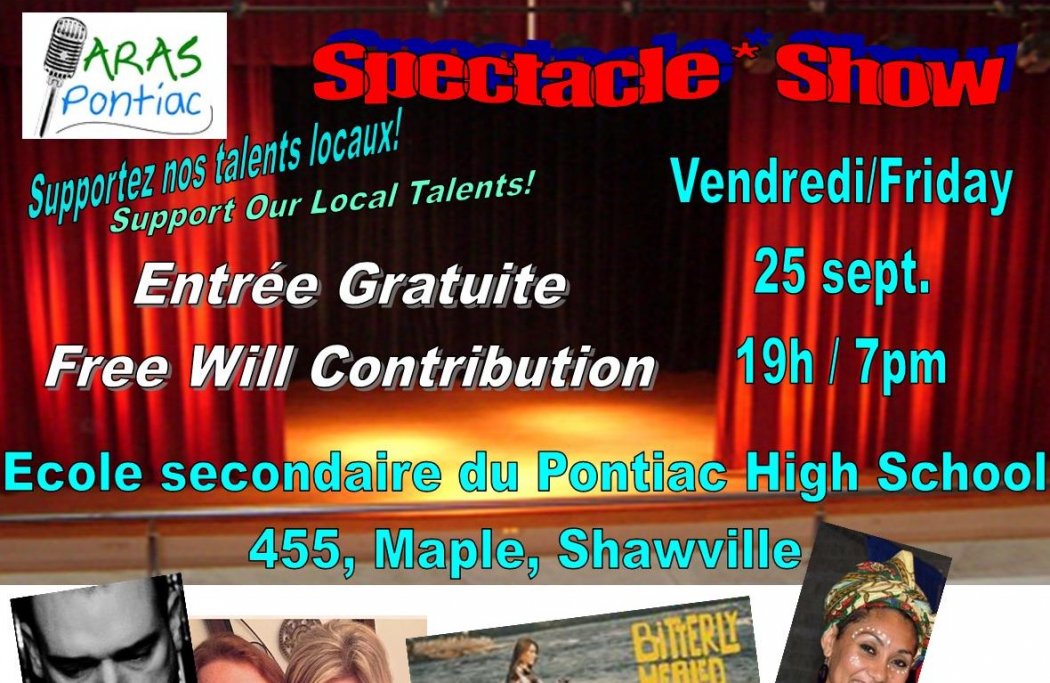 Notre spectacle annuel a eu lieu le 25 septembre 2015 à l’École secondaire du Pontiac à Shawville, de 19h à 22h.