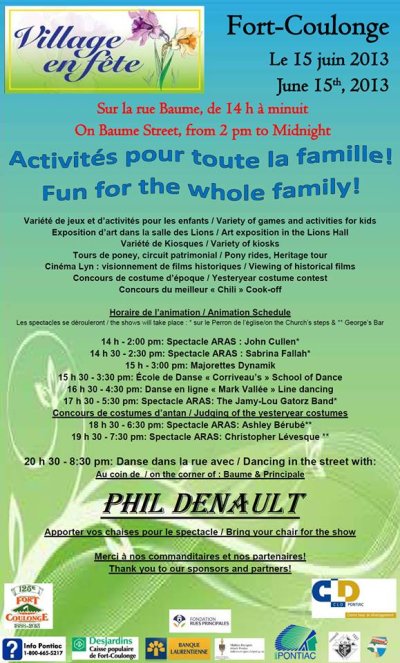 Cette année encore, il nous a fait grand plaisir de participer à Village en fête à Fort-Coulonge, le samedi 15 juin 2013. Des activités pour toute la famille de 14h à minuit.