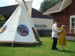 Venetia Crawford des Archives de Shawville a préparé une pièce de théâtre avec des bénévoles sur la légende de Cadieux. Le tipi décoré de l’ARAS a servi de décor.